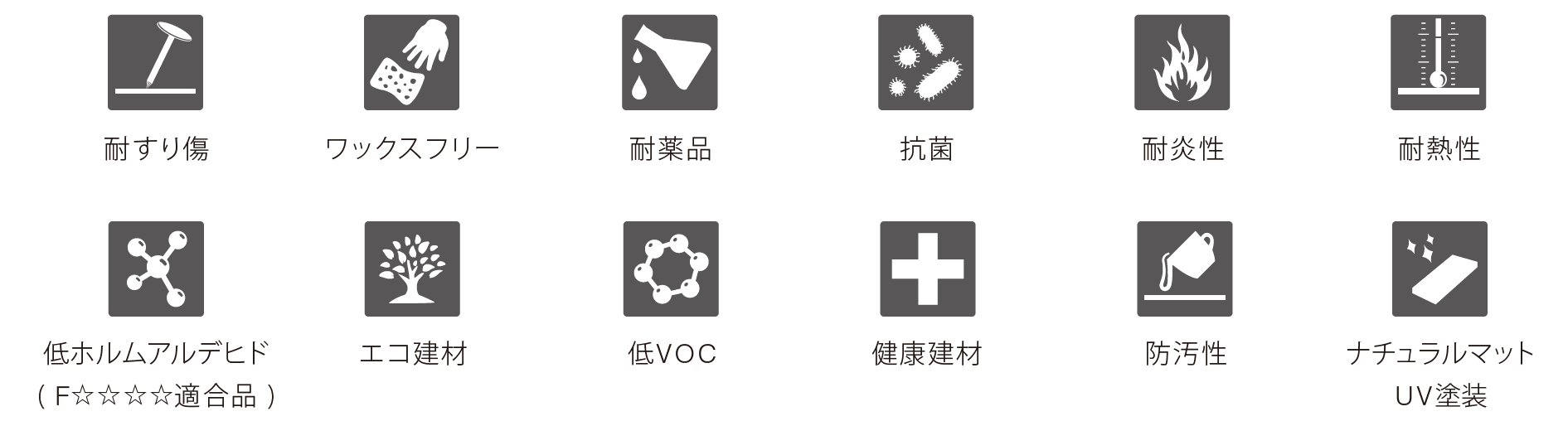 また、F☆☆☆☆対応品の為、環境にやさしく、人体に無害です。多くの住宅・オフィス・公共空間に採用いただいております。