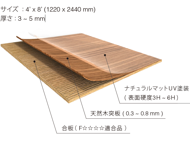 - 用途: 壁面、天井板、什器、家具、ドアなど。